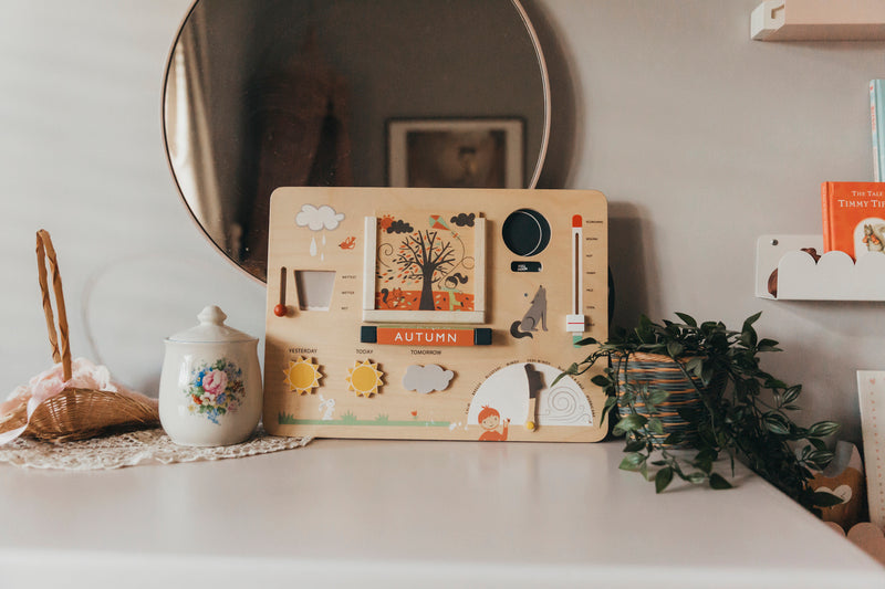 This interactive wooden weather station is perfect for children to learn about the seasons.