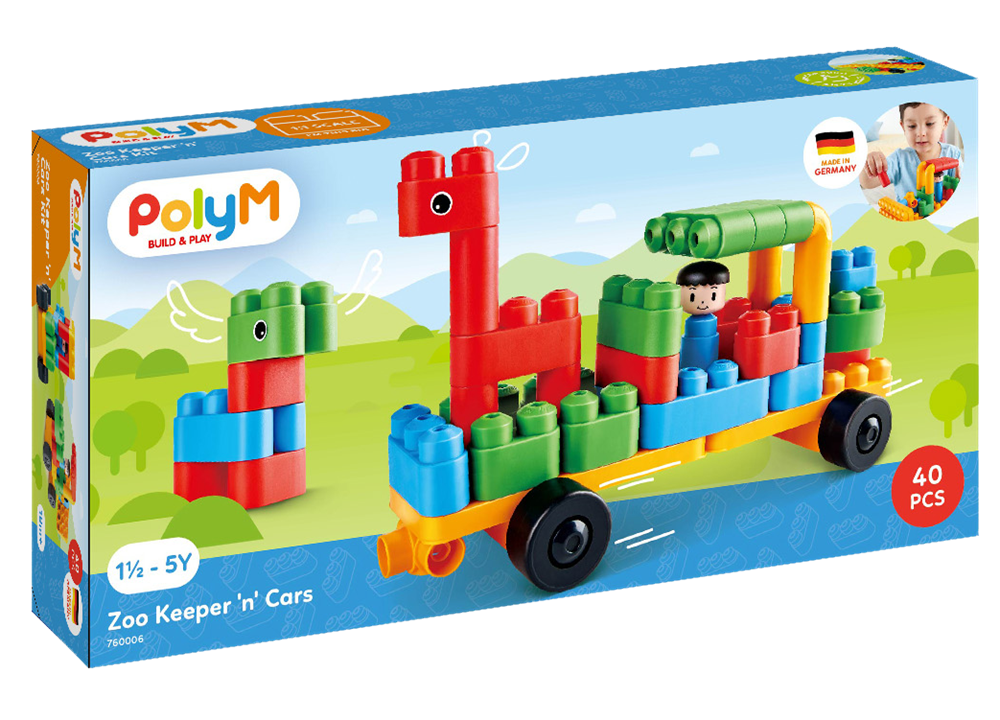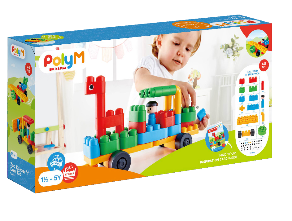 Set your imagination free and create a wide range of interesting zoo-themed vehicles and accessories using easy-build Poly M blocks. The Zoo Keeper ´n´ Cars kit includes 40 PolyM bricks, one eye sticker, build instructions and leaflet.