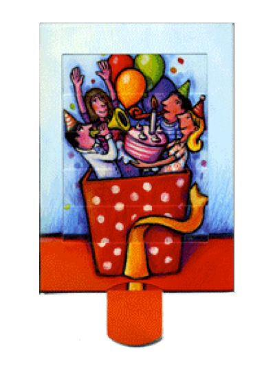 2-way animated live cards are a great novelty item. Slide the tab at the card base and the image changes. It’s a pleasant, amusing surprise for all. Two cards in one with an opening blank page for your handwritten message.