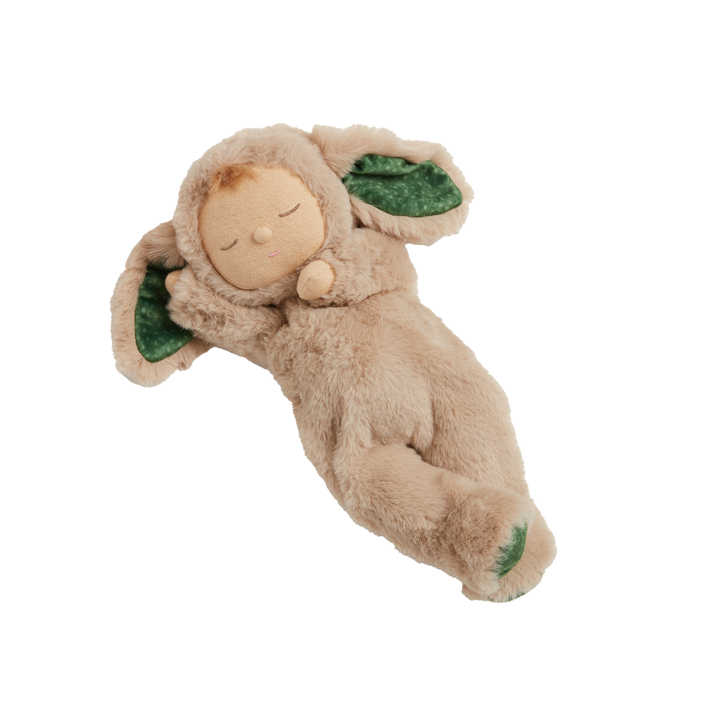 Every detail is carefully embroidered, from their sweet little face to the rainbow right over their heart. Twinkle features a tuft of hair and wears a plush onesie with two bunny ears (perfect for nestling) lined with our collectable Evergreen print. Cozy Dinkums are gently weighted for added calm and lightweight for little hands, perfect for endless play and cuddles from birth and beyond.Â