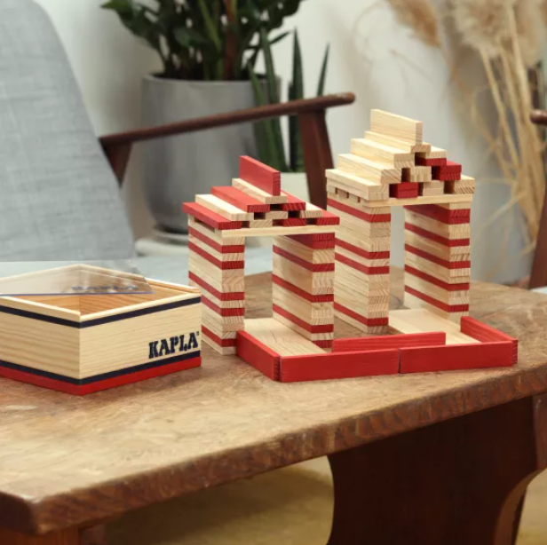 KAPLA planks are all the same size. simply stack the identical KAPLA planks, without any glue or clips, to build your imagination: a universal concept that adapts to all ages. The coloured planks are dyed using food-safe colouring.