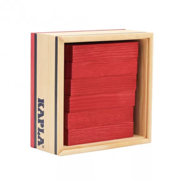 Each KAPLA 40-piece Square contains 40 planks of the same colour. The planks are presented in a neat wooden case decorated with a colour-matched border and closed with a sliding lid.