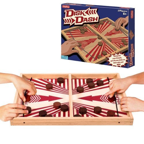 It’s fast, Furious, frantic fun in a head-to-head challenge as you try to shoot all your disks through the gate to your opponent’s side of the board