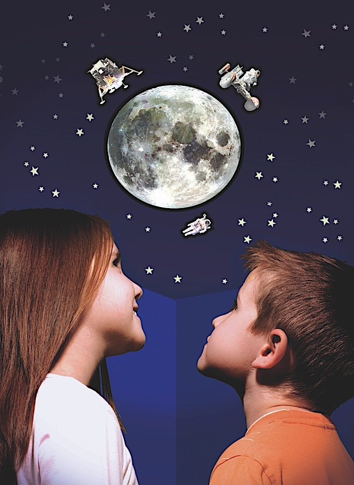 All year round and daylight visible, the Glow 3D Moon makes an interesting room decoration. Easily affixed with self-adhesive pads, the Glow 3D stickers produce a fascinating glow-in-the-dark display. Just expose the stickers to a light source for a few minutes, turn off the light and watch them glow. Endless fun!