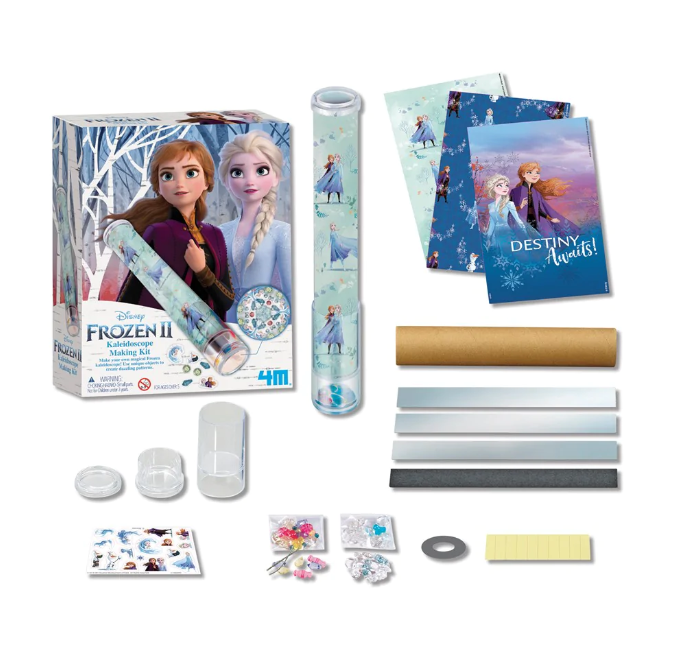 Make a 25 cm long Snowflake Kaleidoscope and decorate it with Frozen-themed stickers.