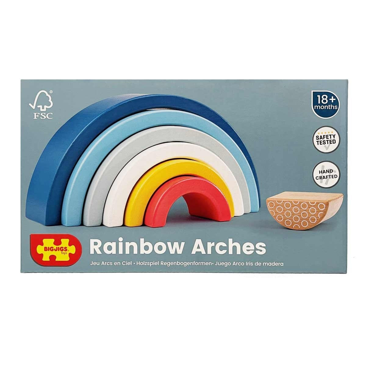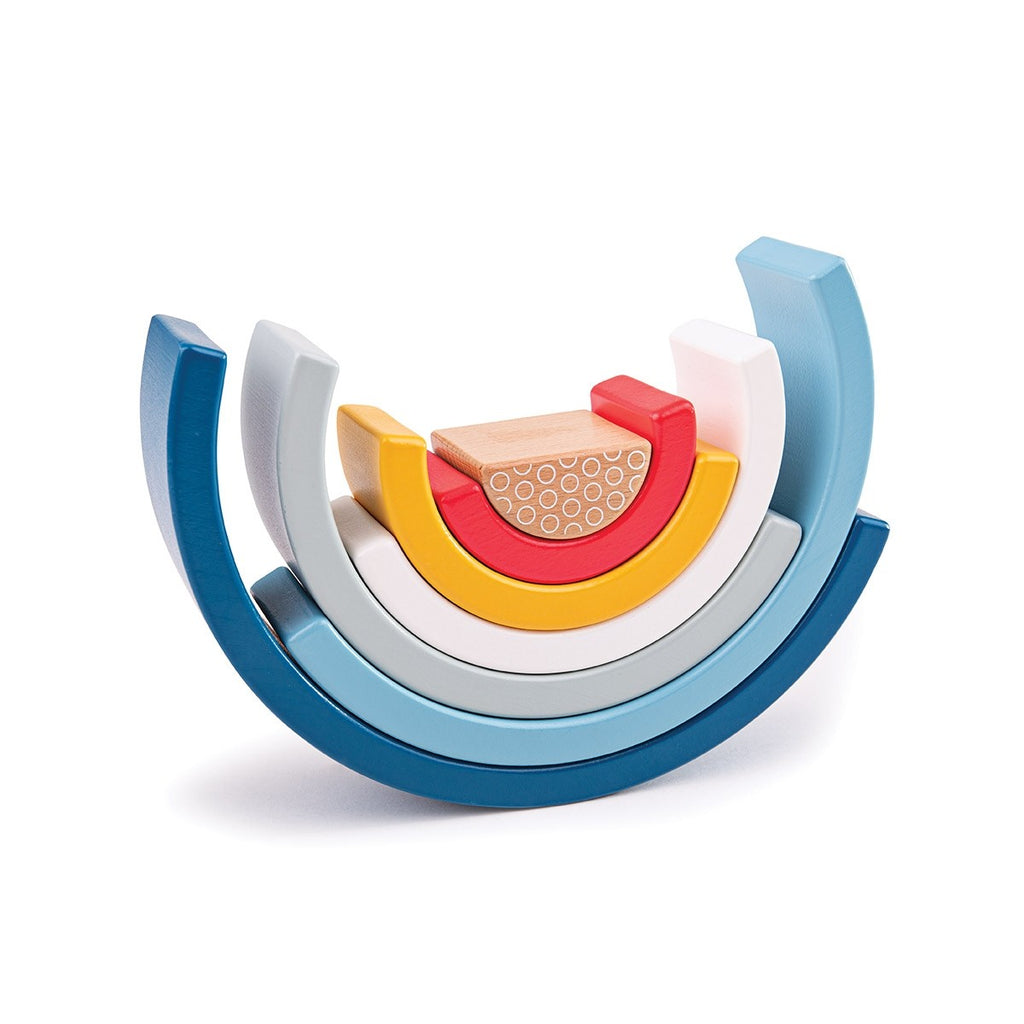 A colourful set of nested wooden arches. Stack them or let your imagination run wild. Each arch can become a tunnel, marble run or anything you care to imagine. A soft satin finish with visible wood grain. Made from 100% FSC Certified materials, this shape sorter has been made in the most ethical way possible.