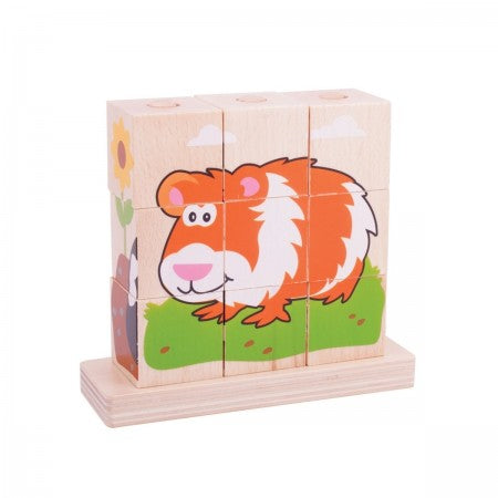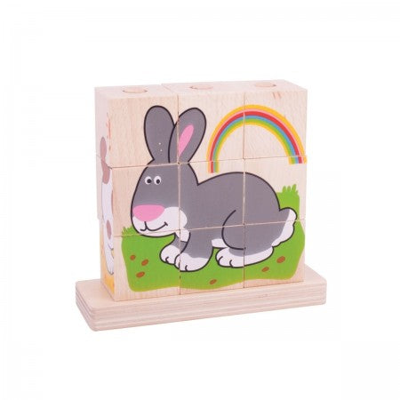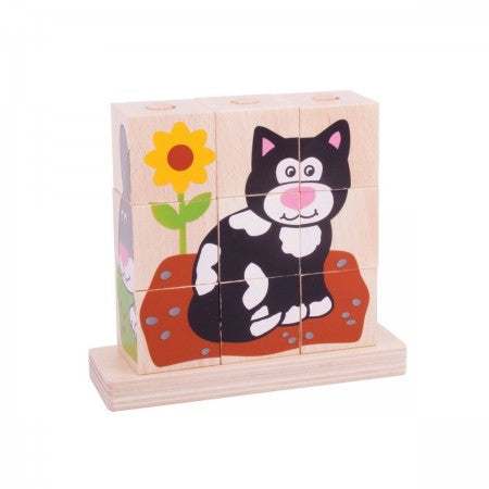 Chunky wooden stacking blocks. Creates four different full colour puzzles. Use it as a stacker or as a stand alone block puzzle.