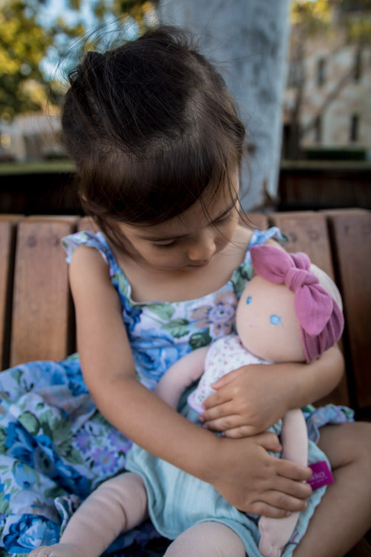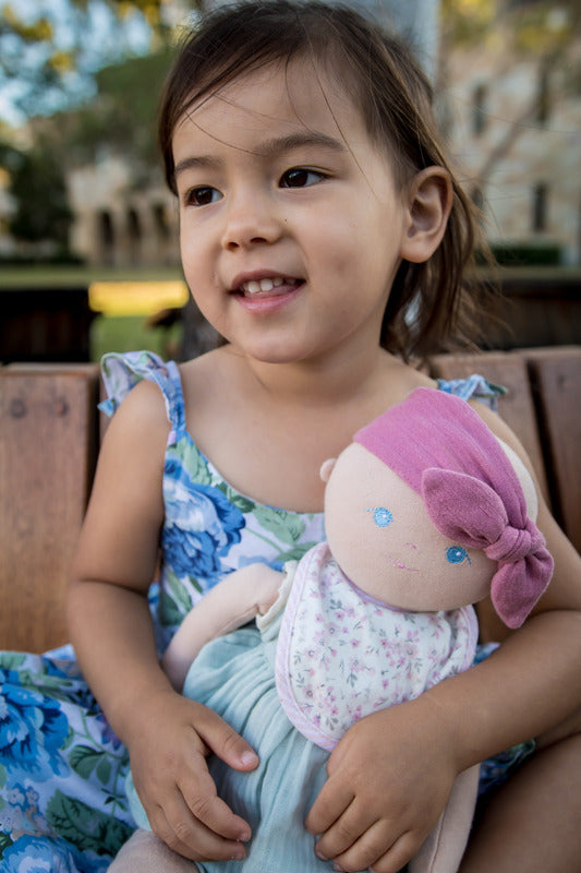 Meet baby Kaia an adorable organic sweet girl doll with a weighted bum that provides comfort as you hold her. She is organically made and OE100 certified. All of her organic 100% cotton clothing is removable, even down to her cloth diaper.