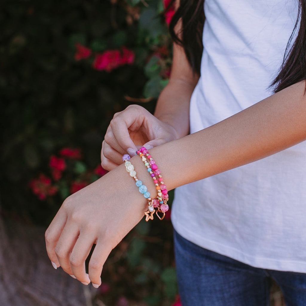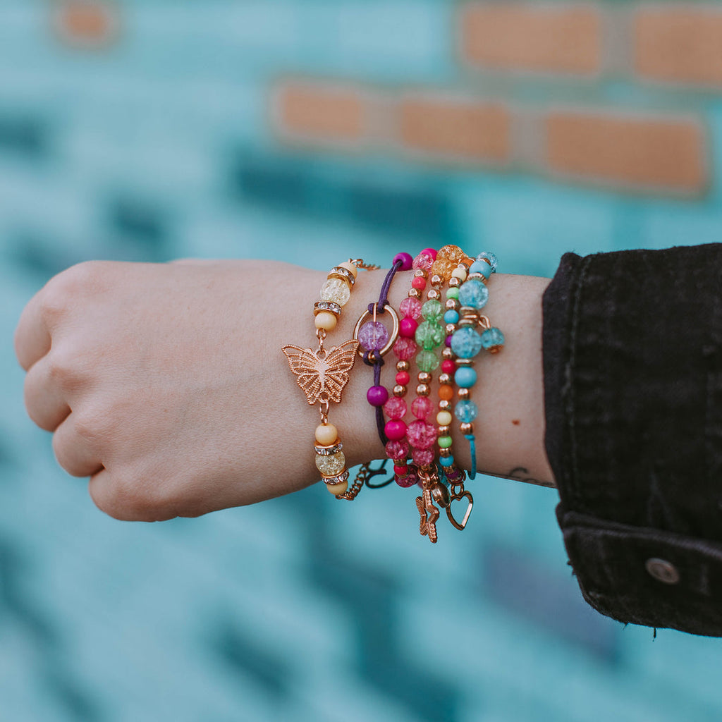 This rainbow bracelet kit helps young girls develop fine motor, visual, and motor skills - all while having fun, creating fabulous jewellery, and expressing themselves!