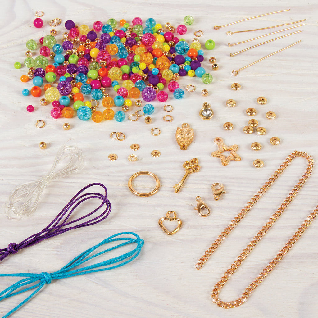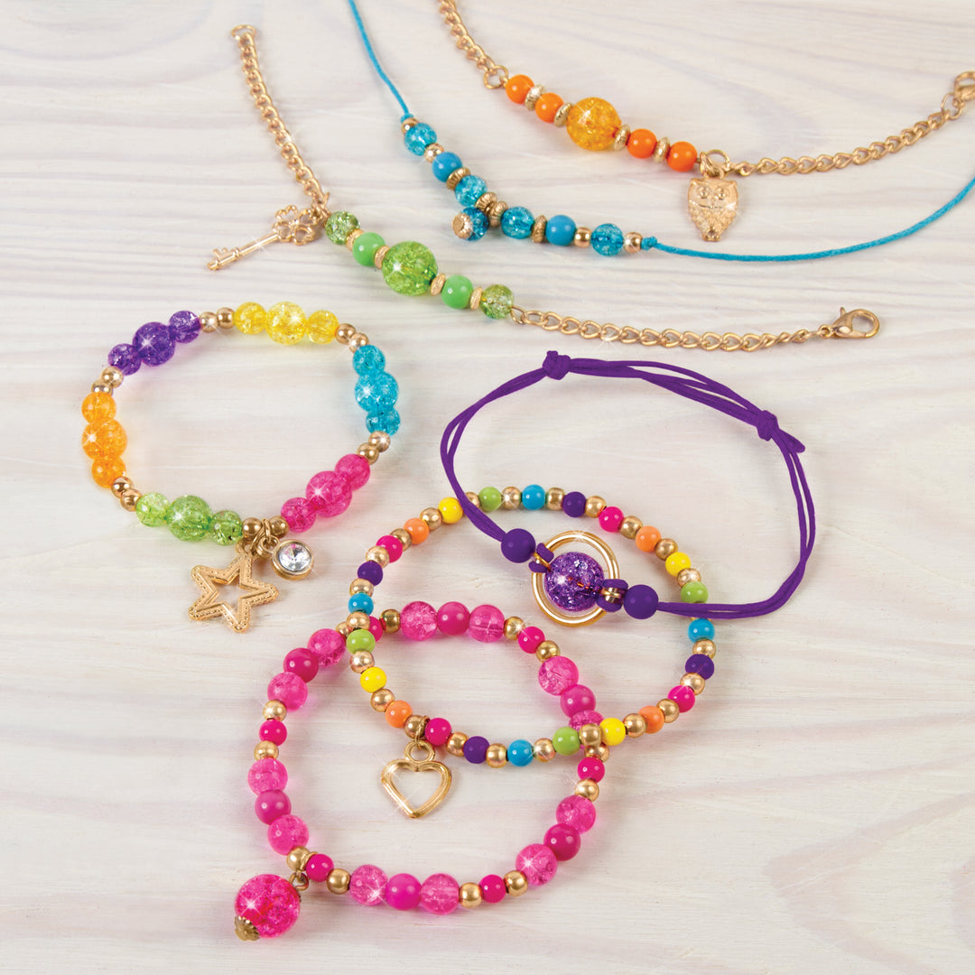 Create your own glitzy crystal jewellery in a range of bright colours and beautiful beads with this kit, complete with everything needed to get started.