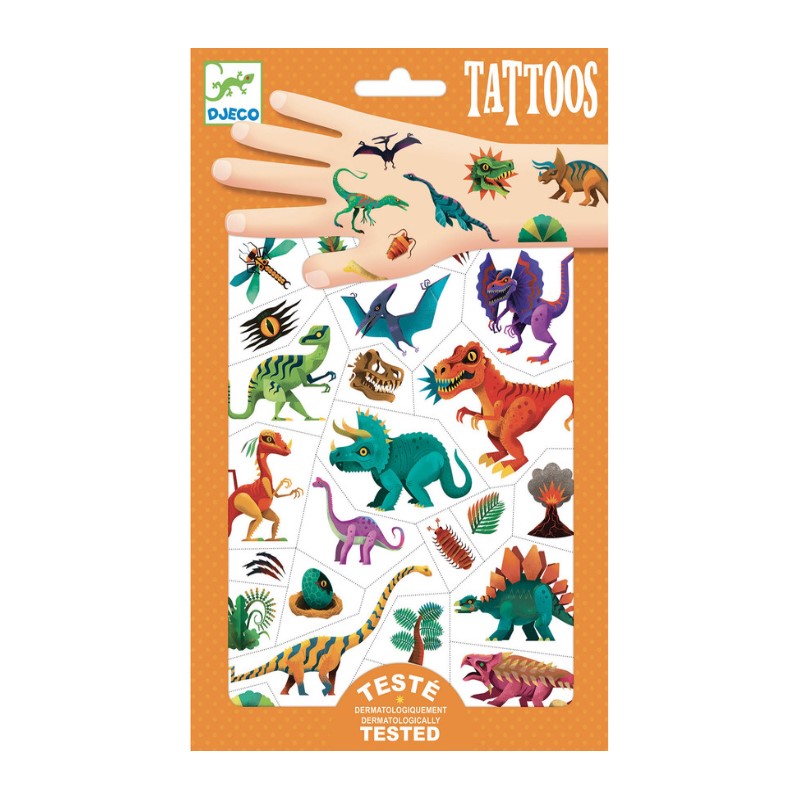 Show your love for prehistoric times with this set of two dermatologically tested temporary tattoo sheets featuring a dinosaur theme. They are pre-cut, so they are easy to use: just apply a bit of water.