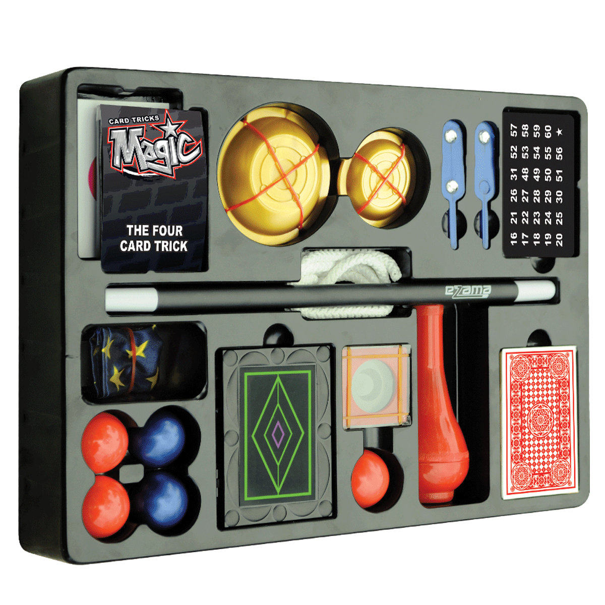 Includes 150 cool tricks. Perform miraculous card tricks, no way disc, and do magic balls from your hands! Perform the amazing ghost in the bottle.