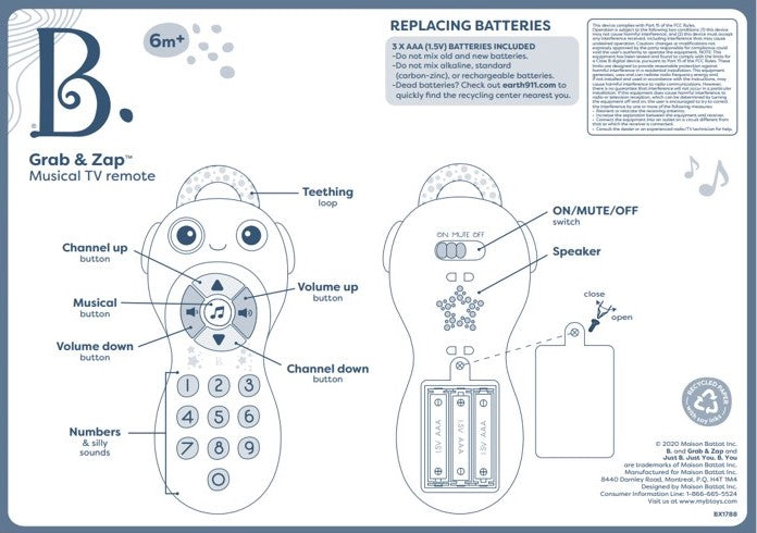 Click away for tons of fun and loads of learning with this Grab and Zap. Little ones can change the channels with the channel button, increase or reduce the volume by the volume buttons, have a musical button, and silly numbers too. It comes with 25 songs and sounds.