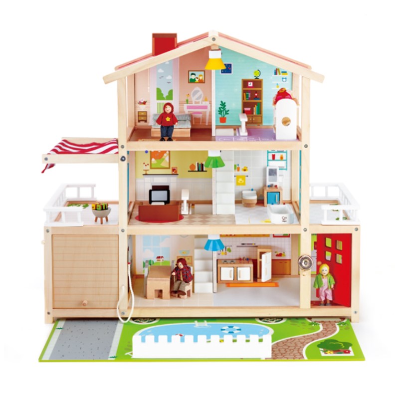 Most children dream of a doll house of their own, and this wonderful Doll Family Mansion, complete with moveable lamps and doorbell, is as realistic as it gets. Make your doll family feel at home by rearranging their furniture and acting out their daily routines.