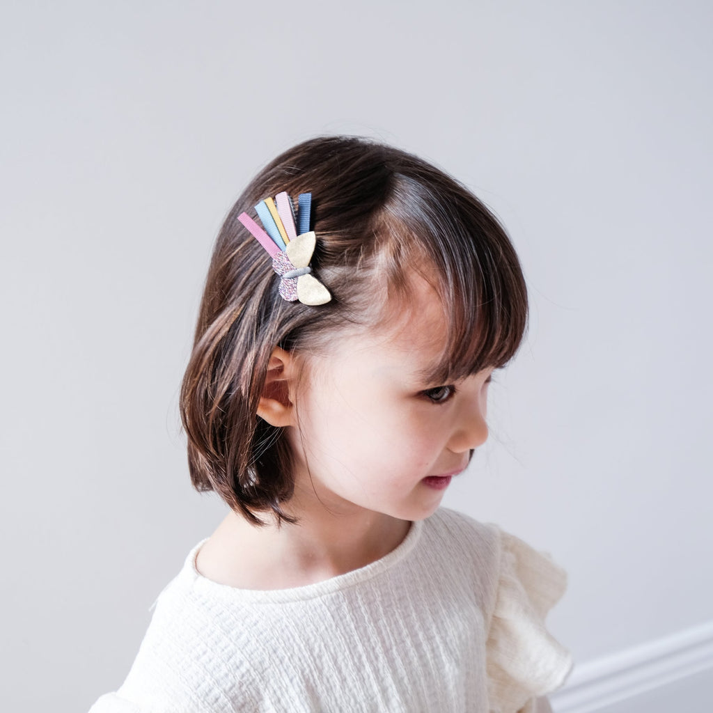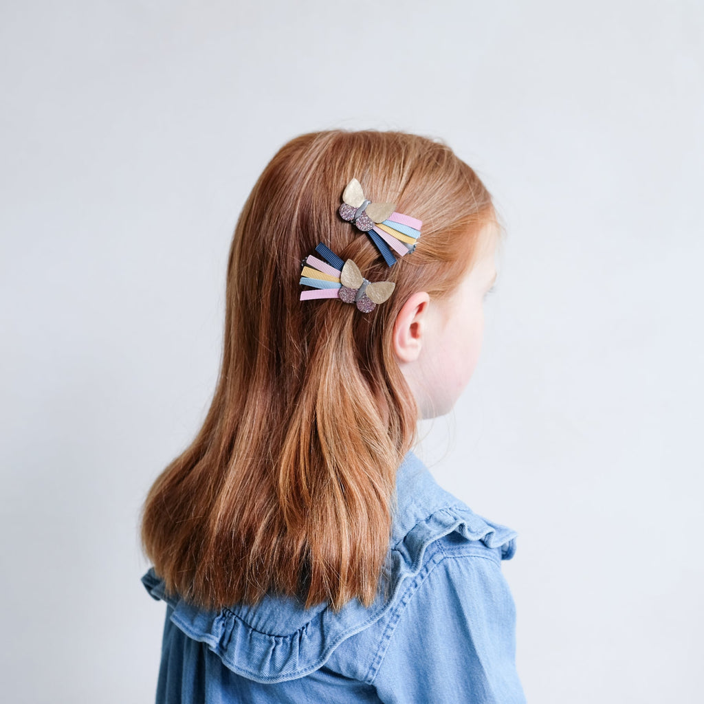 Fly high, butterfly! These lovely leatherette butterflies contrast beautifully with the dreamy grosgrain ribbon colors to make a stunning clip that's perfect for special occasions.