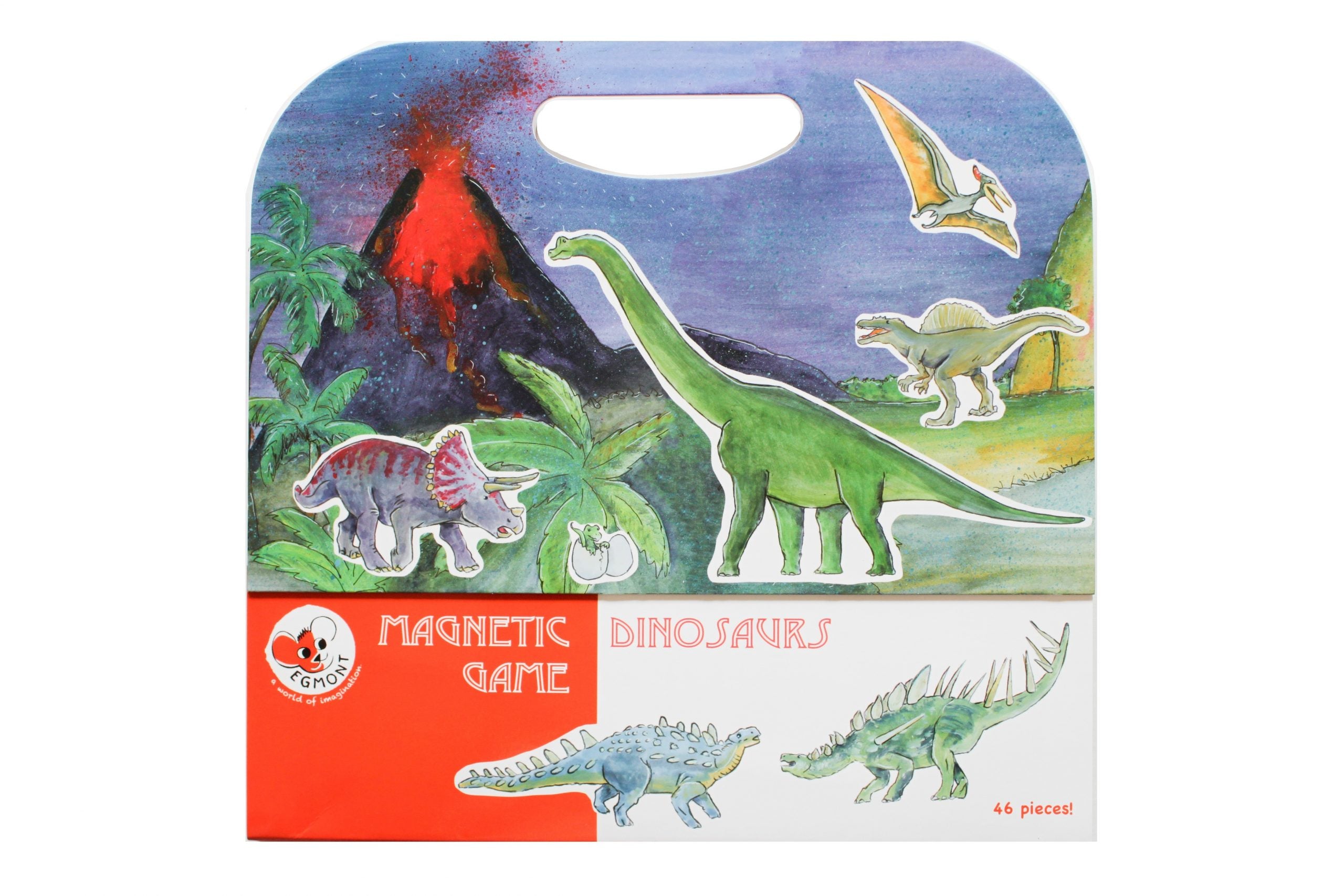 This magnetic Dinosaurs playset features a fold-out baseboard with 46 pieces of Mesozoic Era design. It can be easily stored and comes with a carry handle.