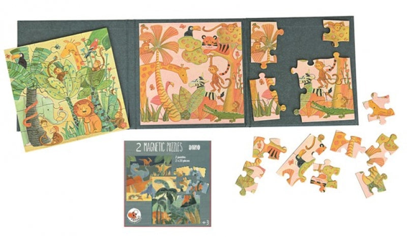 2 magetic puzzles of each 20 pcs are hidden in this threefold album! Easy to take with you wherever you go without losing the pieces.