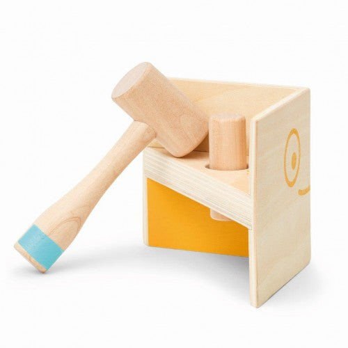 This cute little wooden pounding bench helps your child's concentration and coordination as it practices pounding the peg down into the bench.