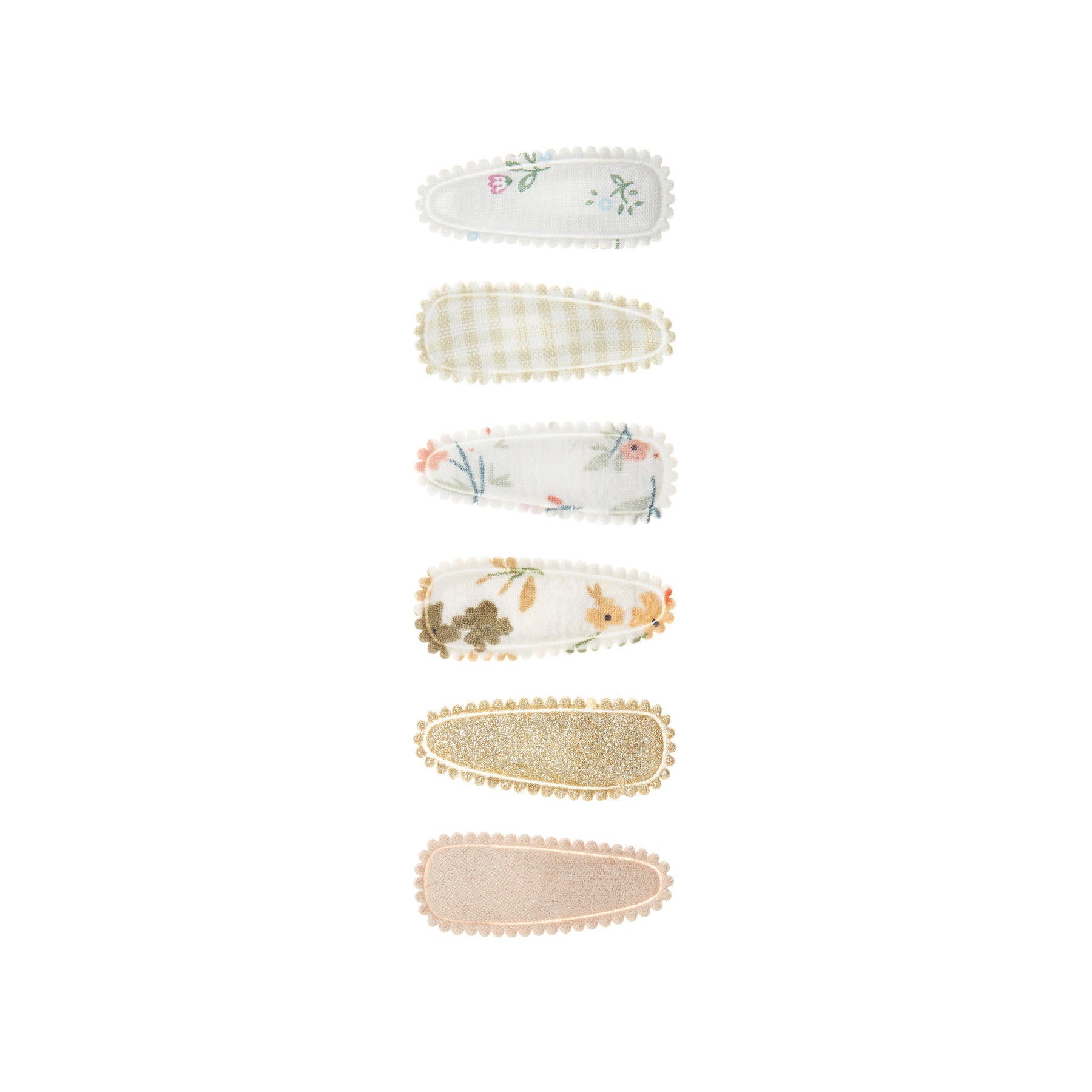 A mini version of our best-selling Mabel clips! Perfect for younger children with finer hair, this seriously sweet clip pack has all you need with a selection of fresh floral prints, glitter, and plain fabrics too.