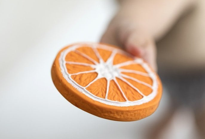 Clementino the Orange is a fruit-shaped baby teether that will stimulate babies’ senses while soothing little gums. Introduce kids into a healthy lifestyle from a young age! Did you know that eating oranges is highly nutritional and beneficial for health? It will become babies and kids’ favorite teether, bath toy and sensory play toy.
