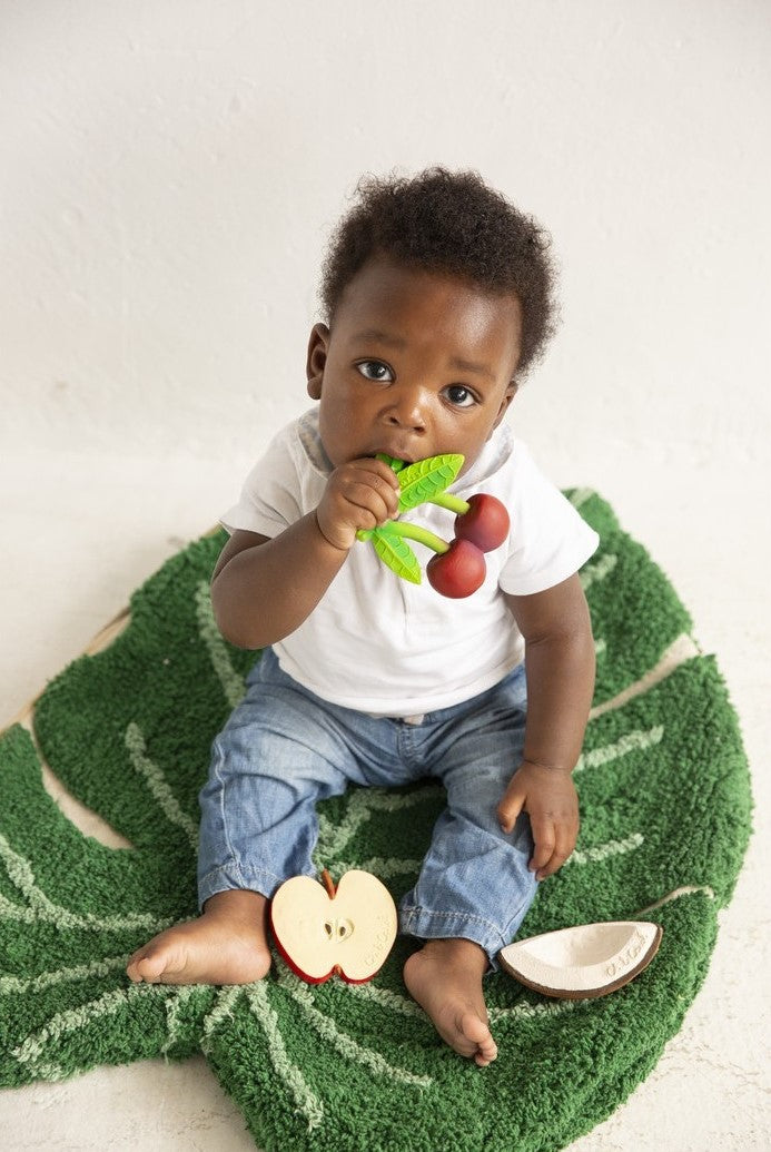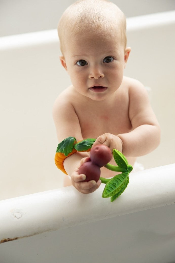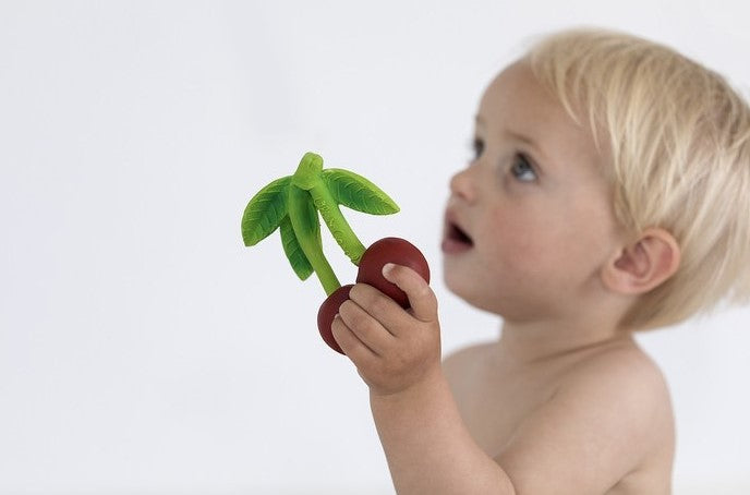 Mery the Cherry is a fruit-shaped baby teether that will stimulate babies’ senses while soothing little gums. Its size is perfect for kids to hold on and its realistic textures will help develop kids’ sense of touch. Introduce kids into a healthy lifestyle from a young age! It will become babies and kids’ favorite teether, bath toy and sensory play toy.