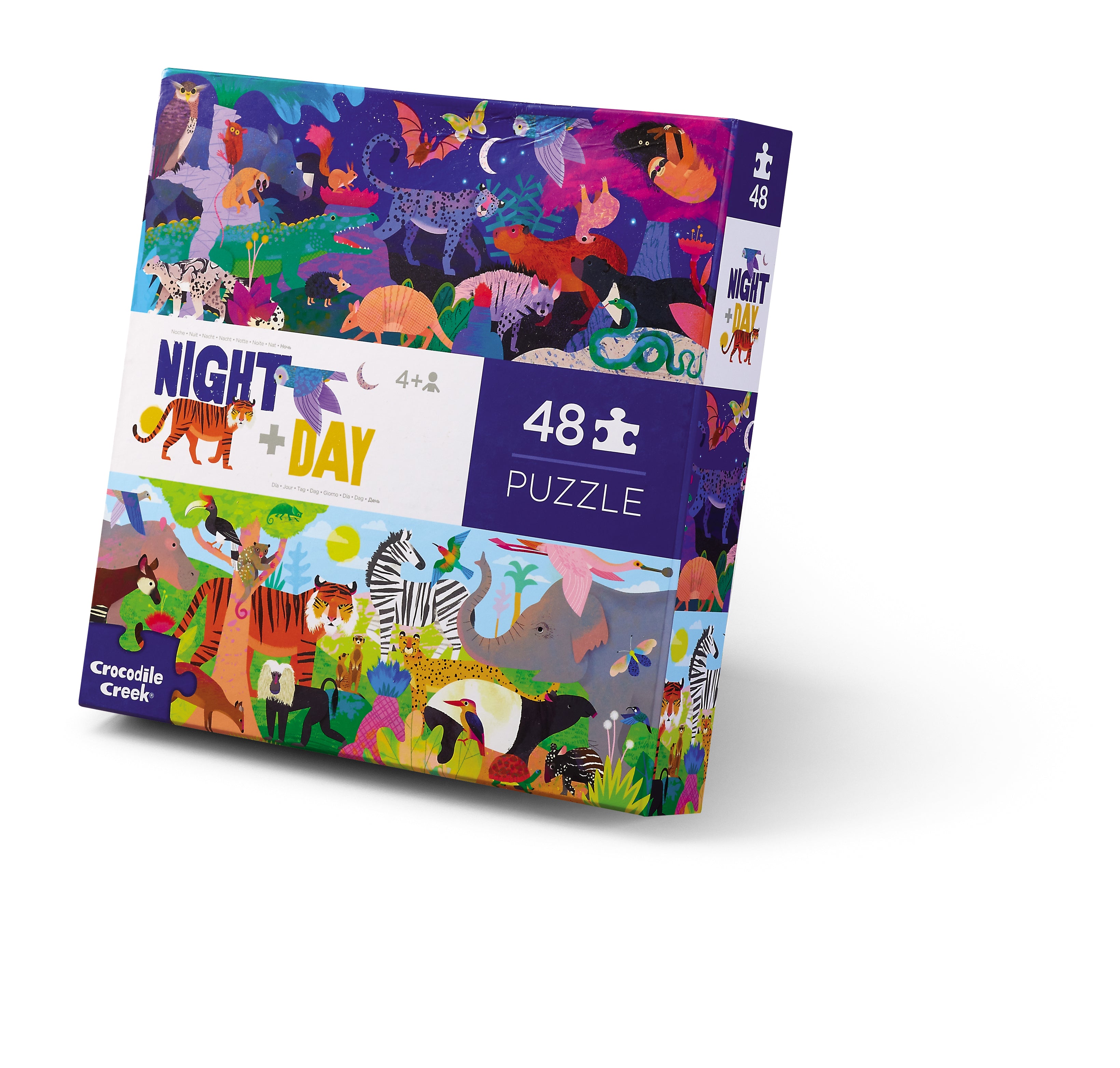 Introduce inquisitive children to the concept of opposites with this beautifully illustrated exploration of our fascinating animal kingdom: nocturnal creatures most active at night and those who thrive in the day. The jumbo, sturdy pieces of this 48-piece, high-quality floor puzzle are ideal for little hands.