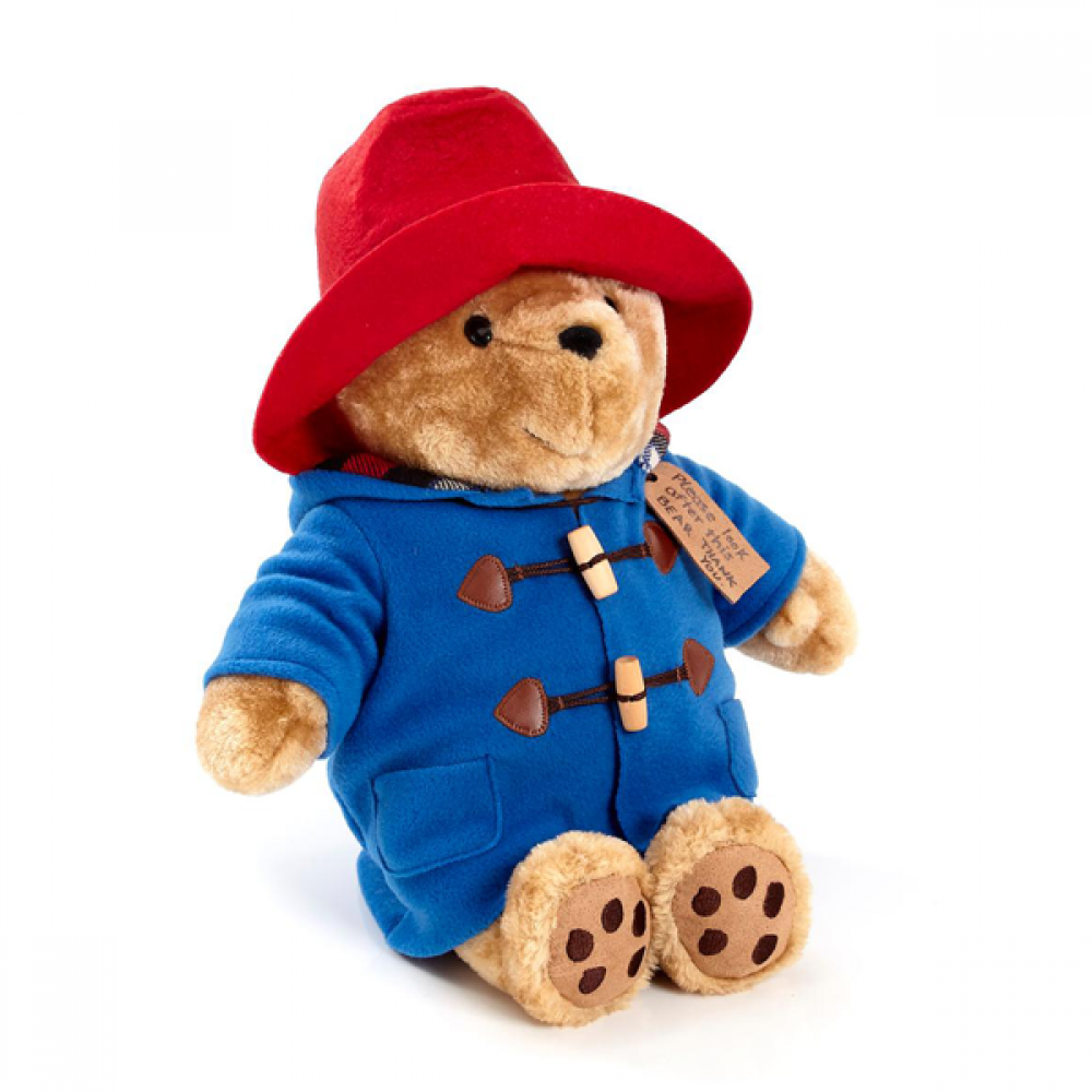 Soft and cuddly Paddington Bear sits wearing his traditional duffel coat, well worn red hat and suedette 'please look after this bear' tag. A perfect cuddly companion.