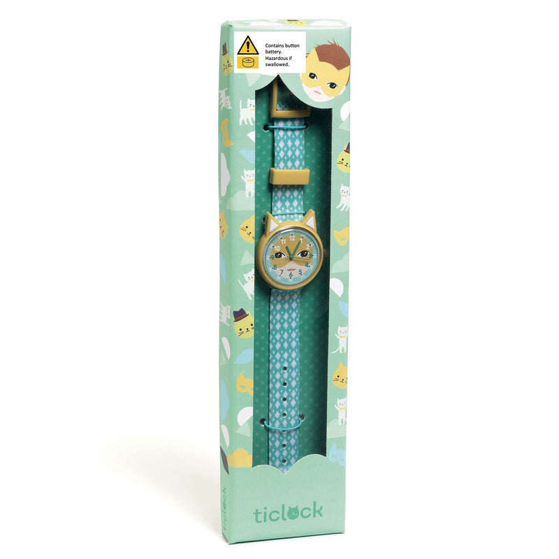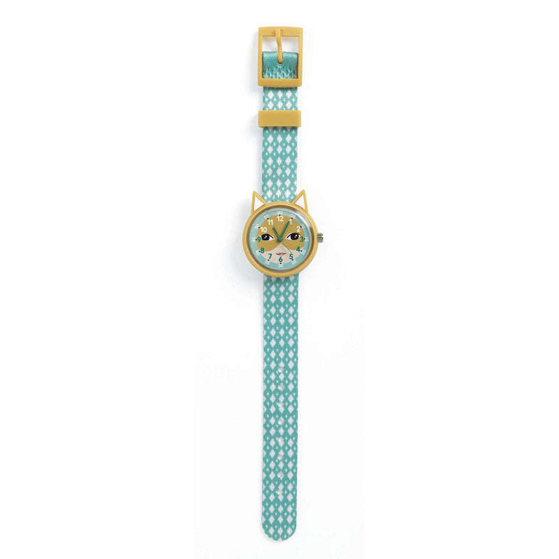 A playful and adorably illustrated quartz phosphorescent animal watch to learn to tell the time. This educational watch features two distinct dials (one for the hours, the other for the minutes) and fine hands to make telling the time easier.
