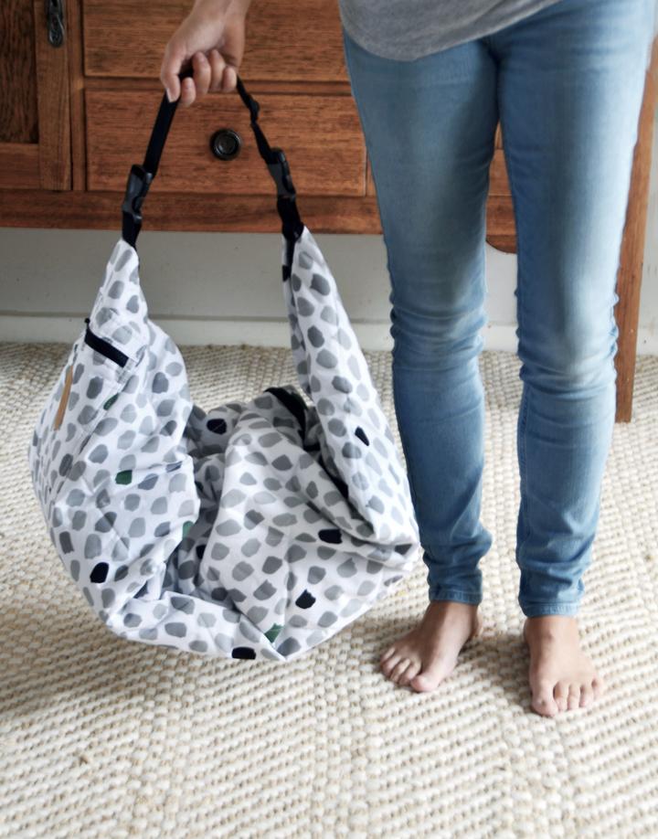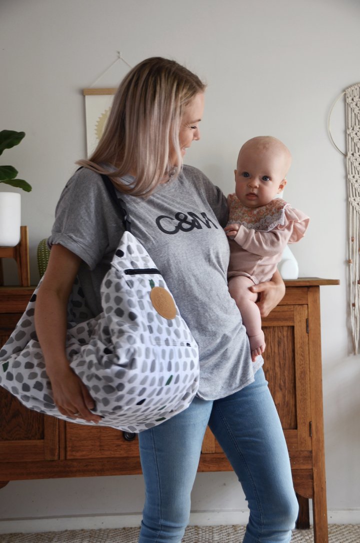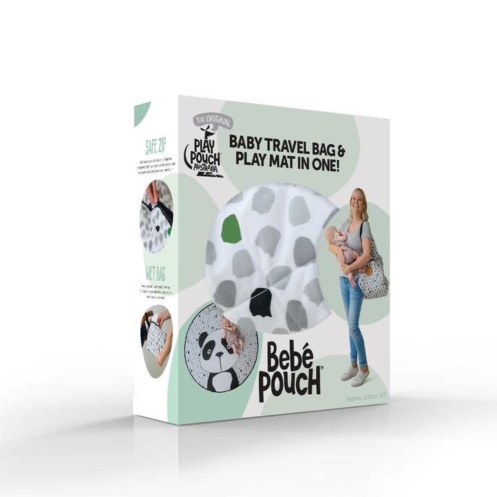 Spread the water resistant Bebé Pouch out for your baby to lay and play on. To pack away the Bebé Pouch, simply close the zip, click the clasp and the Bebé Pouch becomes a light-weight travel bag that holds the toys, rugs, bottles, wipes and more. You and your baby will love the ease of having a play mat and travel bag in one. The pocket on the front will keep the essentials carefully stowed. The padded soft-to-touch jersey cotton mat provides a comfortable surface for your baby and when carried the Bebé Pouch hangs easily over the shoulder or pram leaving your hands free to care for your baby.