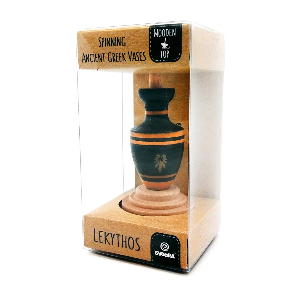 The Collectible Ancient Greek Lekythos vase wooden spinning top is here to familiarize you with the Ancient Greek tradition that mainly typed of Greek pottery used to store or carry liquids of water, oil, and wine, during the Ancient Greek period.