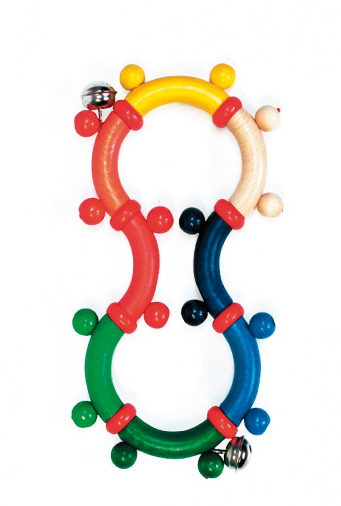 The wooden rattle in 8 forms has been developed to stimulate the dexterity of the little ones. Babies will love the sound of the little bell and the soft pastel colours.