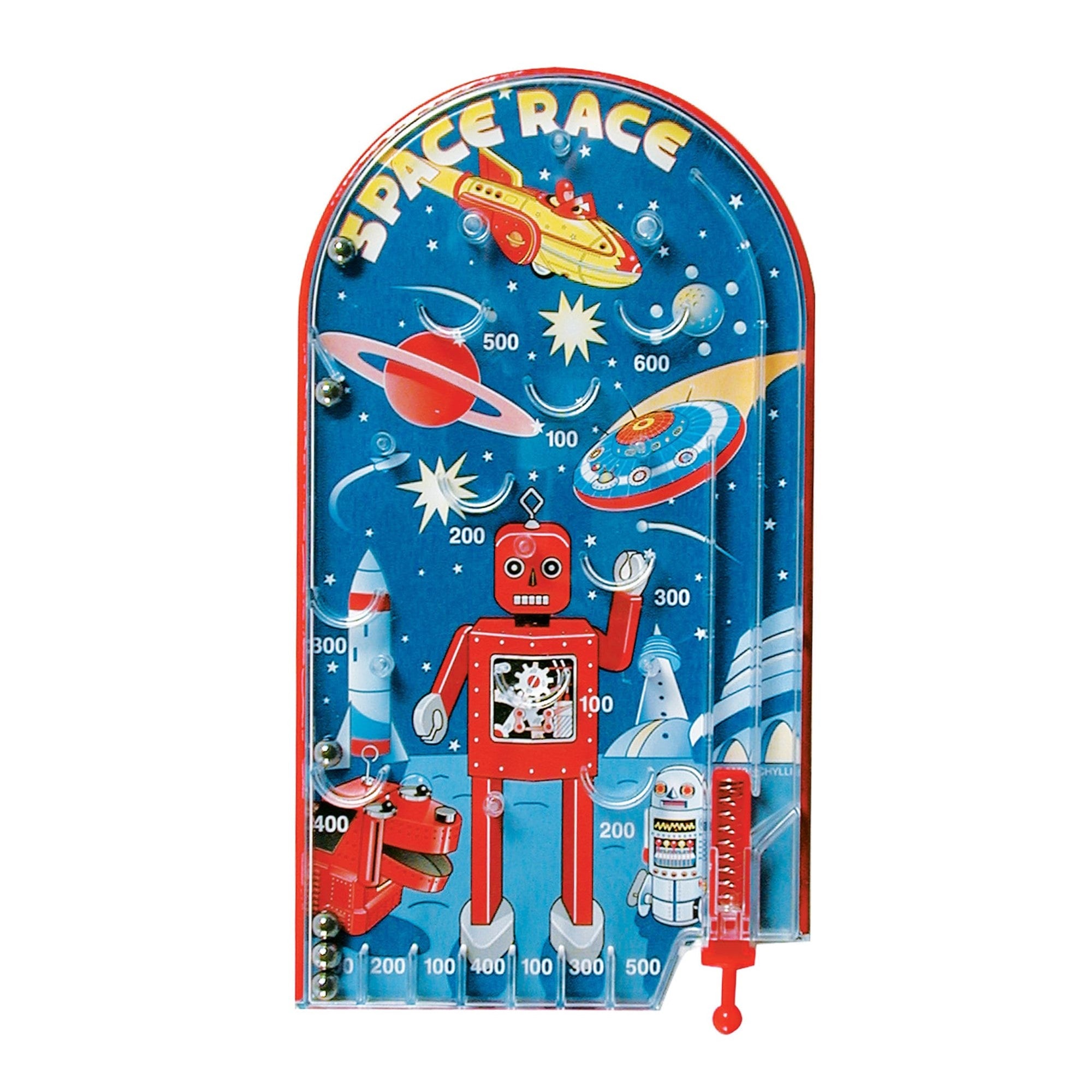 Challenge your skills and your friends with our fun pinball games! Space Race Pinball is a portable, colourful tin pinball game! Just pull the launcher to send the ball into orbit and collect points throughout the galaxy!