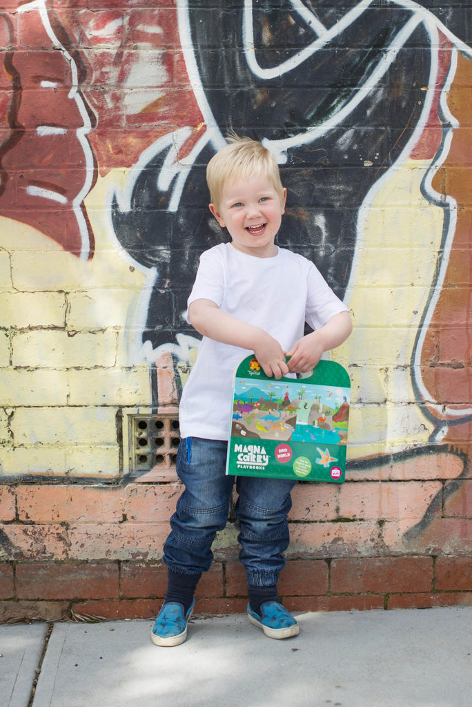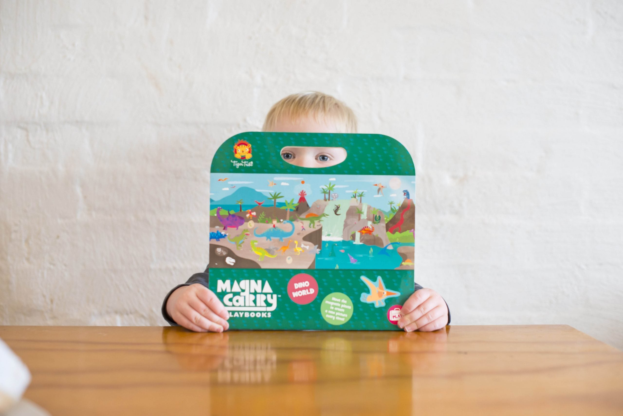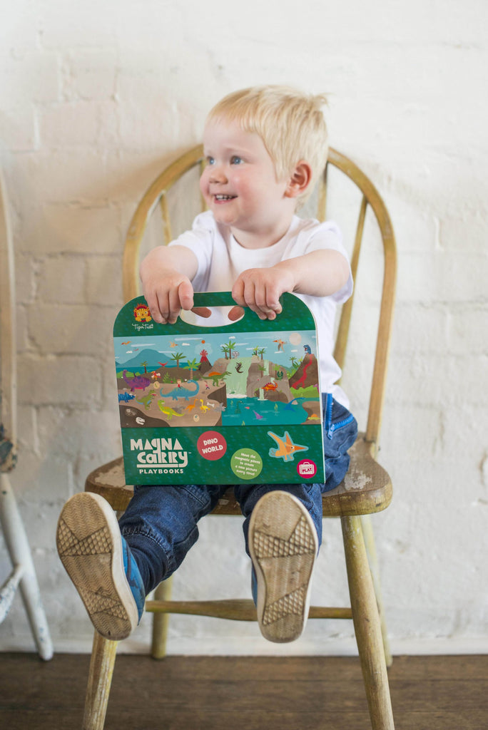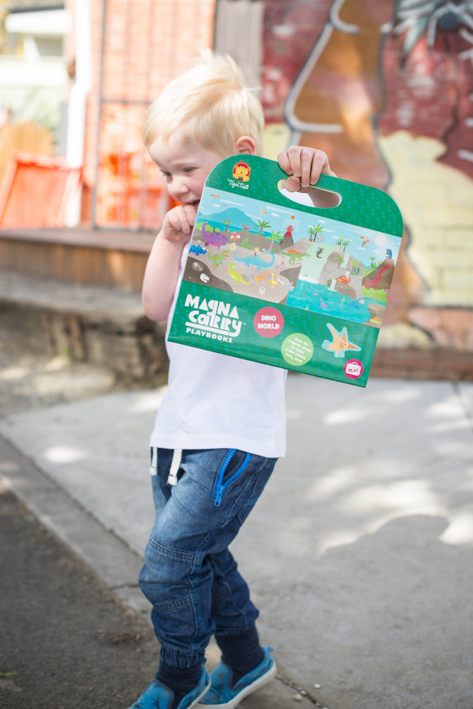 Designed and illustrated in Australia by the Tiger Tribe team — Magna Carry helps develop imagination, fine motor skills and encourages independent play. Each set comes with 2 sheets of press out magnets and is super portable (easy to fold up and take with you).