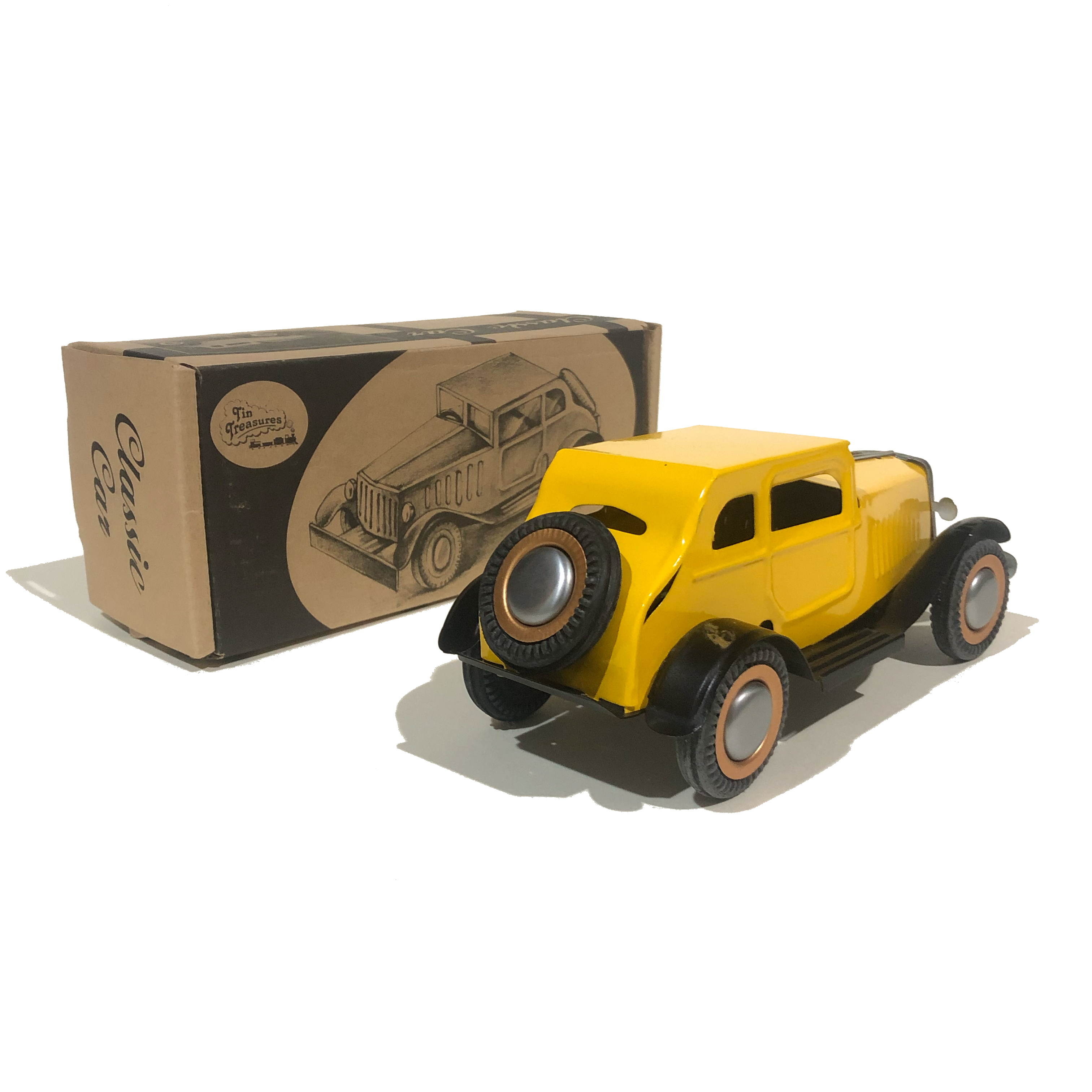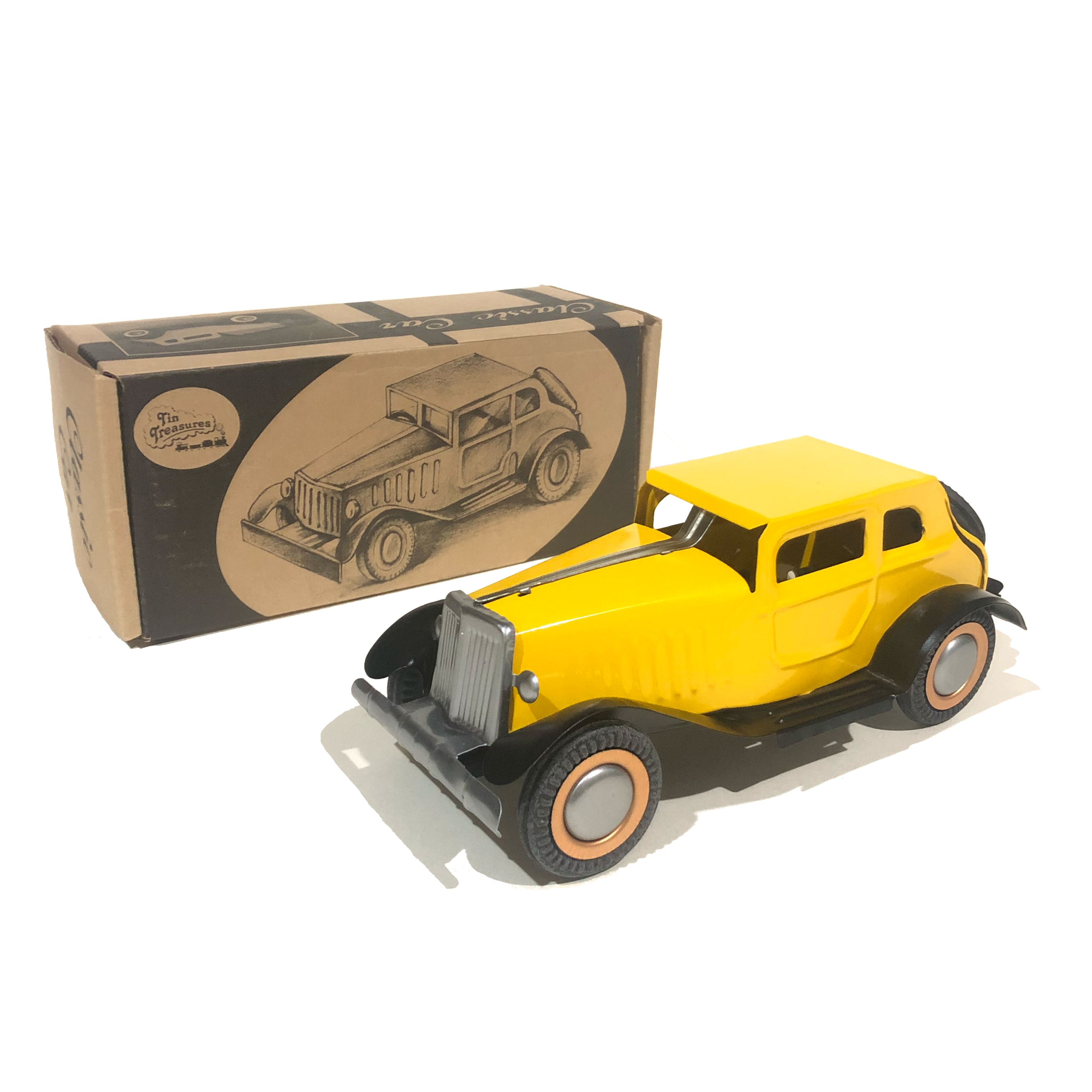 It is a return to nostalgia with this large classic freewheel car. Rubber wheels and beautiful details will make this a part of any toy collection.