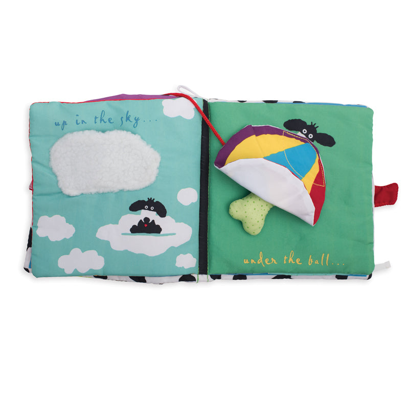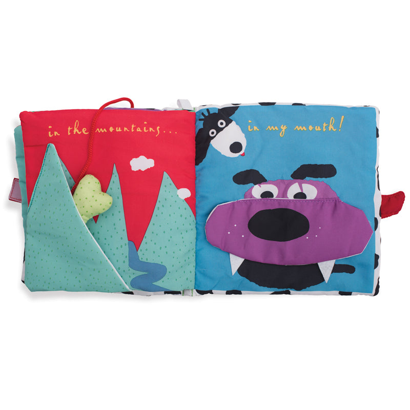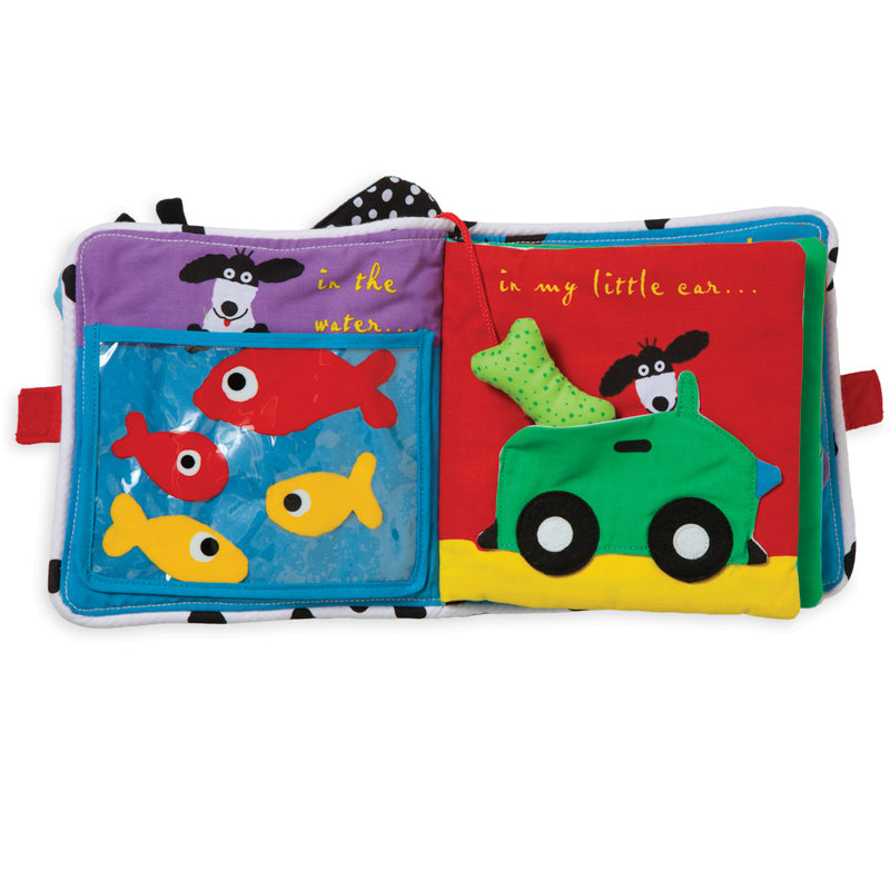 A clever and imaginative soft activity book that babies will enjoy flipping through. Features colorful tactle fabrics, six pages, and a velcro-like closure.